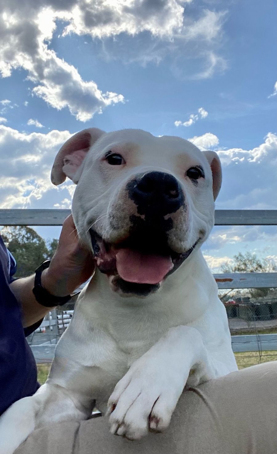 Tyson is learning basic commands such as "sit", "stay" and "shake paws" and is becoming more calm with each passing day. He is toilet trained so he would make a great indoor dog, but if left unattended in the yard, he will need a fully secure enclosure with a roof as he can jump and climb mesh fencing if left alone. Despite his separation anxiety, he's cool, calm and collected when with his humans - never straying far from their side. With the right guidance, Tyson will make an amazing companion for the lucky family that takes him in!