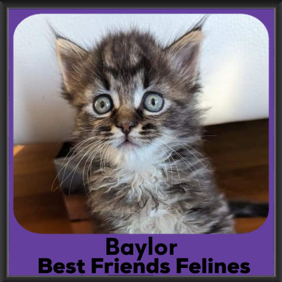 Hi my name is Baylor and I'm a beautiful fluffy tabby. I have 3 sisters but I can still hold my own.