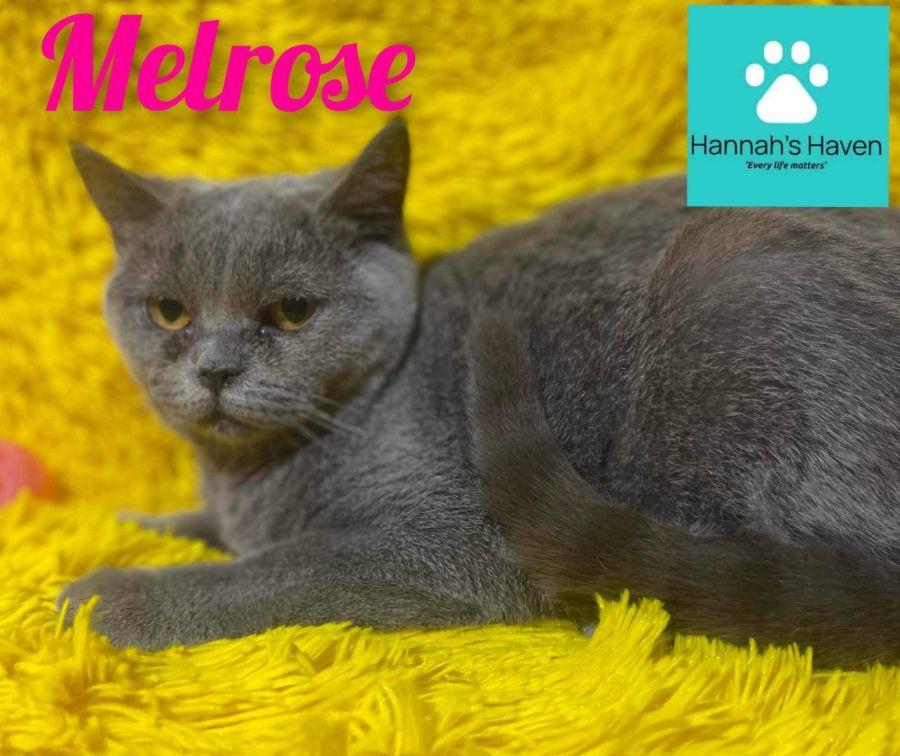 Although Melrose loves attention, it should be noted that supervision around young children is necessary. Loud noises can often overwhelm her, so a quiet home where she can relax would be ideal. With time and understanding Melrose will blossom into the confident cat she was always meant to be!