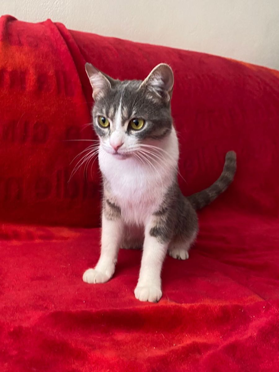 Wendy is a sweet and friendly rescue cat who loves human contact. She was rescued from a property where her tenant was asked to remove her and faced being dumped in a local park. Though we aren't sure of her exact history, we do know that she has been deprived of companionship for some time as she loves to be around people. She is young and full of energy, so an ideal home would have members present most of the time who can give her the attention she needs. Wendy also gets along great with other cats, so if you have another pet at home she will fit right in.