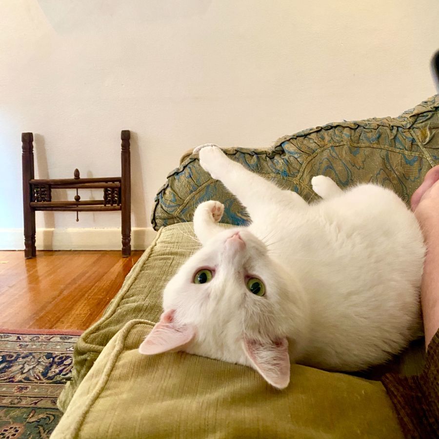It took Sunny a little bit of time to warm up and feel safe, but he learns to love fast and will reward you by showing you his tummy and giving you a clean.