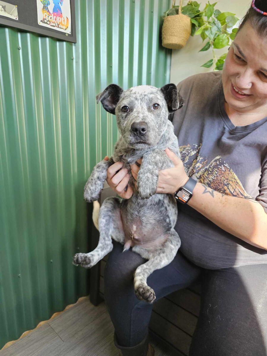Indi is a female Blue Heeler cross, approximately 13 weeks old. She is a sweet little girl who loves to play and is very friendly. Indi will need basic training and socialization, so she can become her best self. She will need a good sized backyard to run around and have plenty of enrichment activities to keep her active as she grows. She's sure to be an energetic pup who will keep you on your toes!