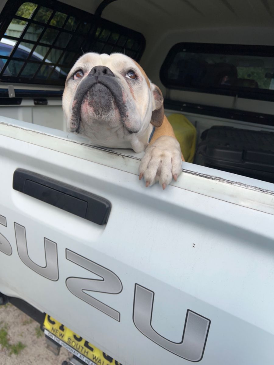 Bully is a barrel of love and energy. He likes nothing better than cuddling up to you. He isn’t a barker. He weighs around 25-30 kgs. He was ok with a female staffy meet but when he trialled with a male similar dog