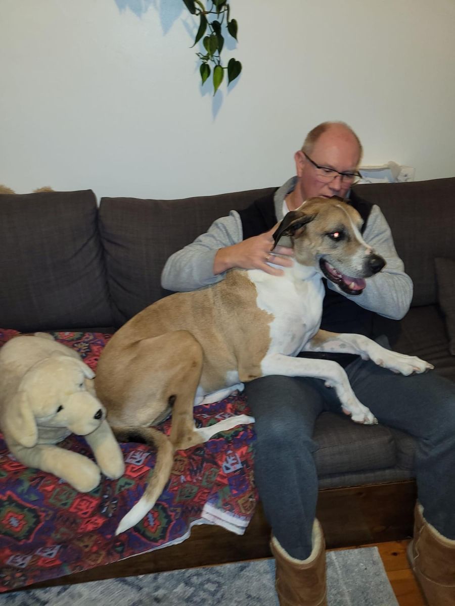 I had the pleasure of having this sweet gentle giant come into my home and it has left such an impression on my heart I didn't think.was possible in such a short time. Nate is the dog of my dreams if I was in different circumstances. He is so friendly, loved every visitor that came to my house instantly and he is so obedient , does not like to upset you so a stern word is all it takes though that was rarely needed and only to manoeuvre him as he loved being right there with his human as much as he could , but also happily went off and rested with his toys and in the sun but would come back to check you are ok. He was such a great companion and we never had one single incident that showed any reason for concern in this time. He was walked twice daily and is perfect on his lead you just need to have a firm hold and lead him but he will happily feed off your energy . He is house trained , which this astonished me at his level of control, slept inside and sleeps through the night and isn't rushing to get up and pee until after you are up. He needs someone who can be home and nearby and who needs the bestest companion ever. If my circumstances were different he would be living his days out at my side without a second thought . I went from having a miniature pinscher to Nate without an issue with his size as his gentleness and eagerness to please made our time extremely enjoyable. He needs a forever home and deserves the best after his hard previous life. Once he looks you in the eyes you too will be hooked. Are you looking for a dog who's life you can change and one that will change your mind about larger dogs forever? You really don't know what you are missing. The bigger the dog the bigger the love. Please consider this beautiful boy and help him find his forever home .