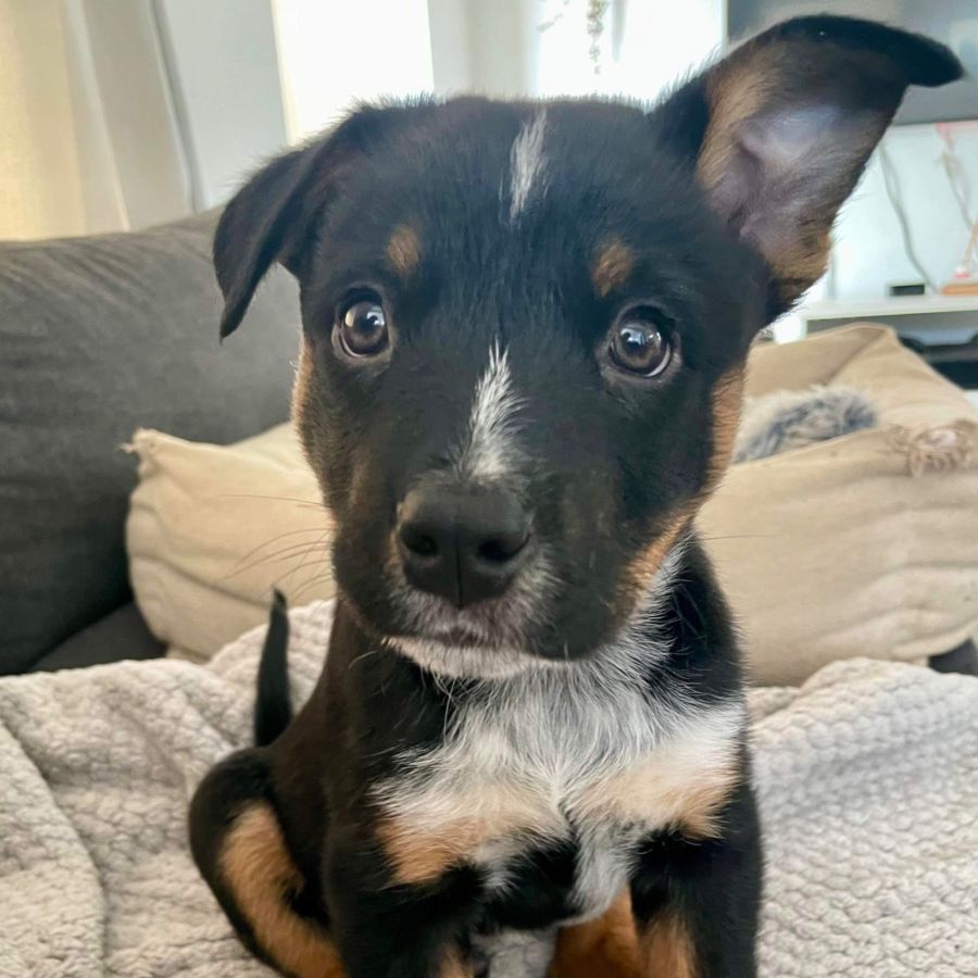 Tassie is our 8wk old Kelpie x Cattle mix boy, and quite an independent little dude….he is a great communicator, food motivated, playful and active pup. This little guy has been well socialised with both people and other dogs and gets along with everyone he meets.