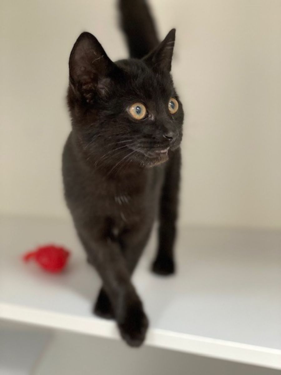Charles is a sweet natured and cuddly cat who loves to play! He has the sleek and graceful movements of a mini panther, but his sweet and smoochy nature make him an absolute delight. He doesn't mind being picked up and held, making him the perfect companion for anyone looking for an affectionate pet. He also loves playing with toys, chasing after balls or getting some good old-fashioned exercise running around. His gentle personality is sure to win over any heart in no time. Charles is the perfect addition to any home that wants some joy and love!