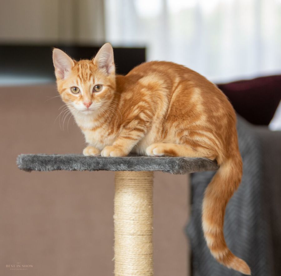 Alfie is energetic, boisterous and full of personality and when he’s done playing, he’s out like a light. He loves nothing more than to cuddle up on the couch or under the desk and makes the cutest little noises when he’s asleep. Alfie would suit a household that has a kitty playmate (or would consider taking his sister too) that can match his full on nature. He would be ideal for a family with children who can handle rough play and know how to tell Alfie no.