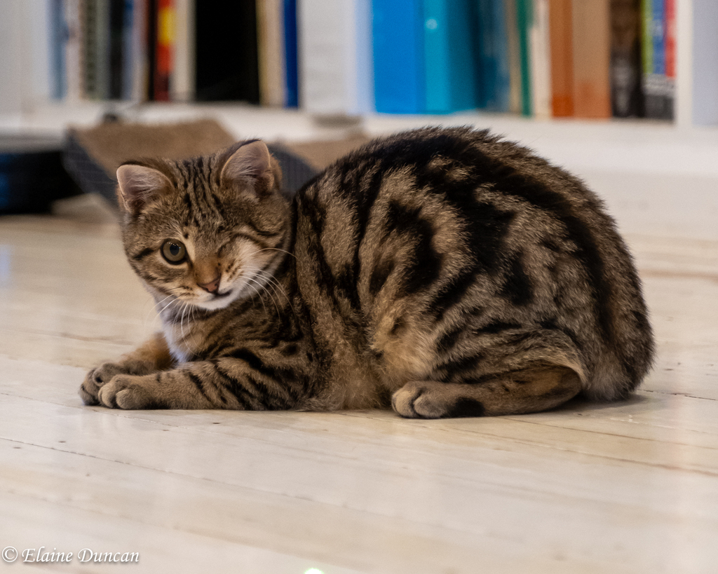 Currently, Alastor's favourite game consists of launching his fluffy and feathered toys into the air with a whip of his head, after which he chases the toys across the room. His throwing skills are quite impressive. When he's not flinging toys around the room, he is rocketing around chasing his cat siblings, although he is equally happy playing by himself.