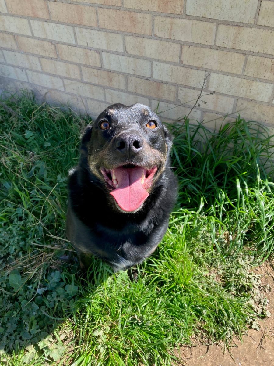 Knox is a 5-year-old, de-sexed male Kelpie X who is black and brindle in color. He was surrendered to us with his brother, Bear, and has been diagnosed with displaced hips; although he isn't in pain, he just needs to take it easy. Despite his condition, Knox is a sweet and happy pup who loves spending time with people. He enjoys cuddles and belly rubs, especially after playing all day.