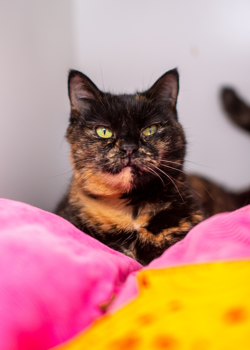 Meet Tabatha, the epitome of feline grace and charm. At an age that's brought wisdom and poise, Tabatha is a stunning senior cat with a heart as sweet as her demeanor. Her elegant, torti coat is a testament to her timeless beauty, and her yellow-green eyes hold a world of stories within.