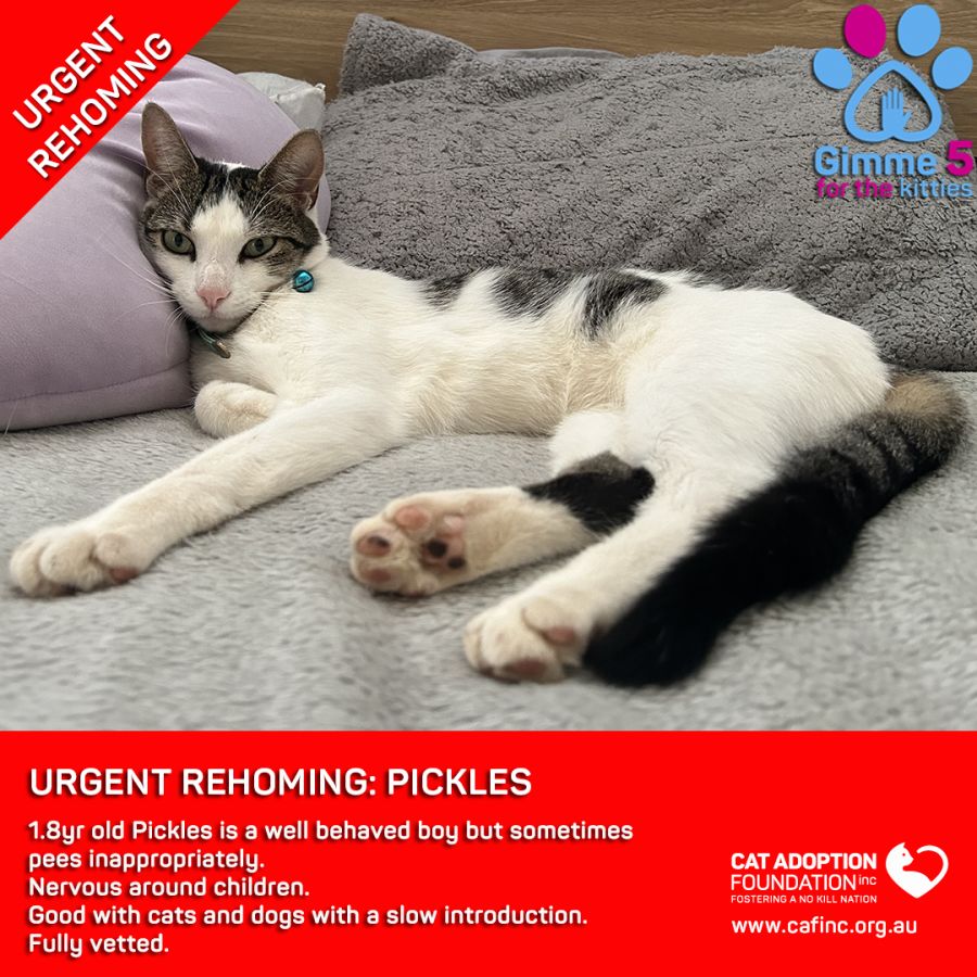 Donate to Pickles Private Rehoming No Charge! at Cat Adoption Foundation Incorporated via Shout