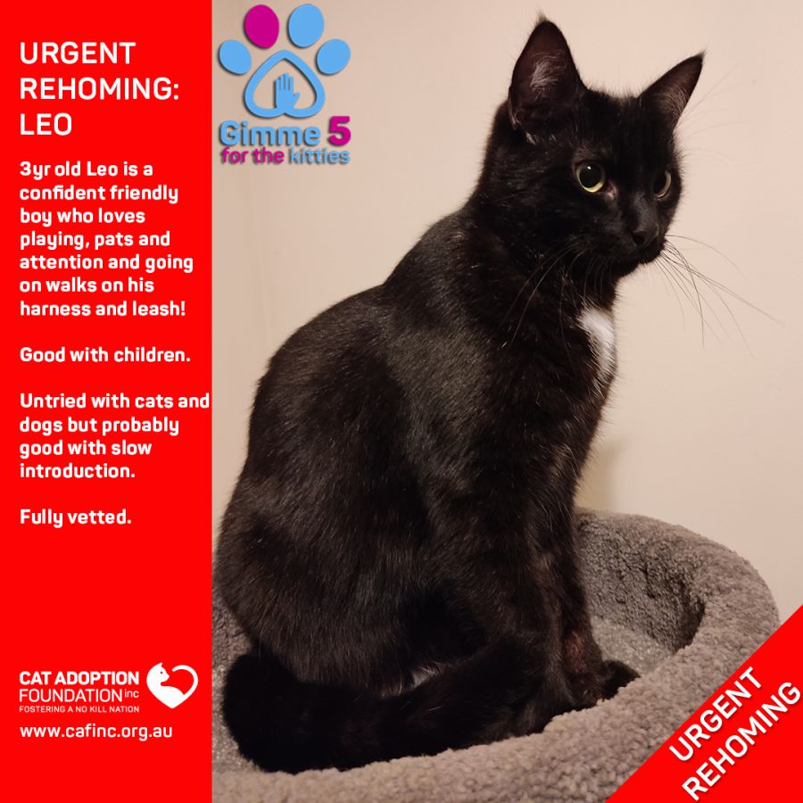 Donate to Leo Private Rehoming No Charge! at Cat Adoption Foundation Incorporated via Shout