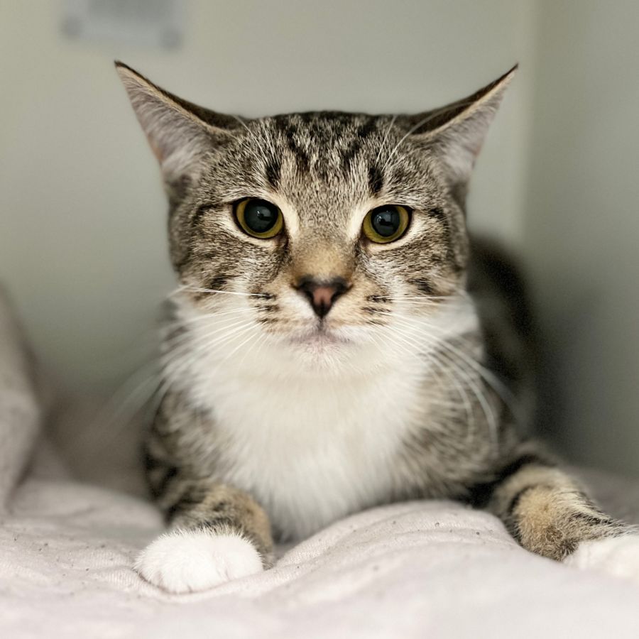 She would be happy in a home with another feline friend or having all the attention to herself.