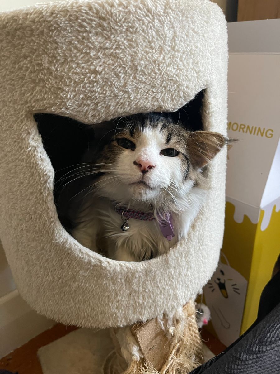 He may be a bit timid at first, but once he gets to know you, he will be your best friend! His favourite thing to do is play with other cats and explore his surroundings. Mississippi loves climbing on towers and sitting in windows seats.