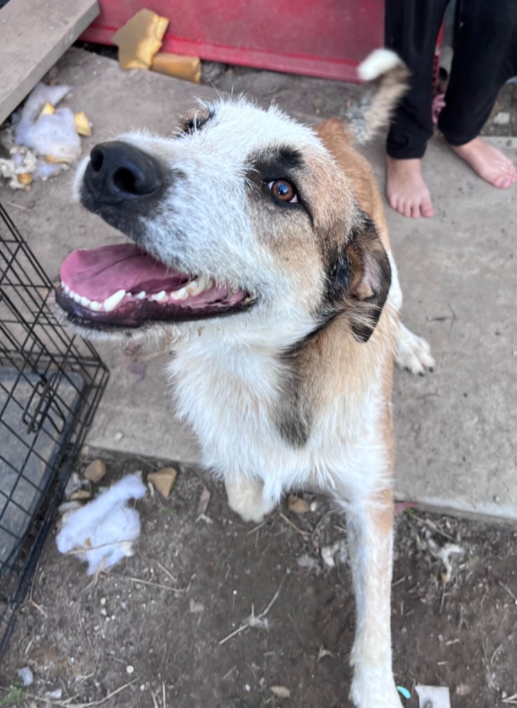 I’m a fully outside dog and I’m crate trained so I’d love a kennel or crate outside for the rainy days in my forever home. I get fed twice a day wet and dry food and a chicken neck/ feet for a treat 2 times a week to keep my teeth stay nice and shiny. I love kids but kids who are 8 or older would be best as I do get over excited and try to stand up to hug you, my current foster human sister is 9 and she sets up obstacles for me as well as playing tag, hide and seek (she’s always the one hiding), playing fetch with me which is honestly the best part of my day.