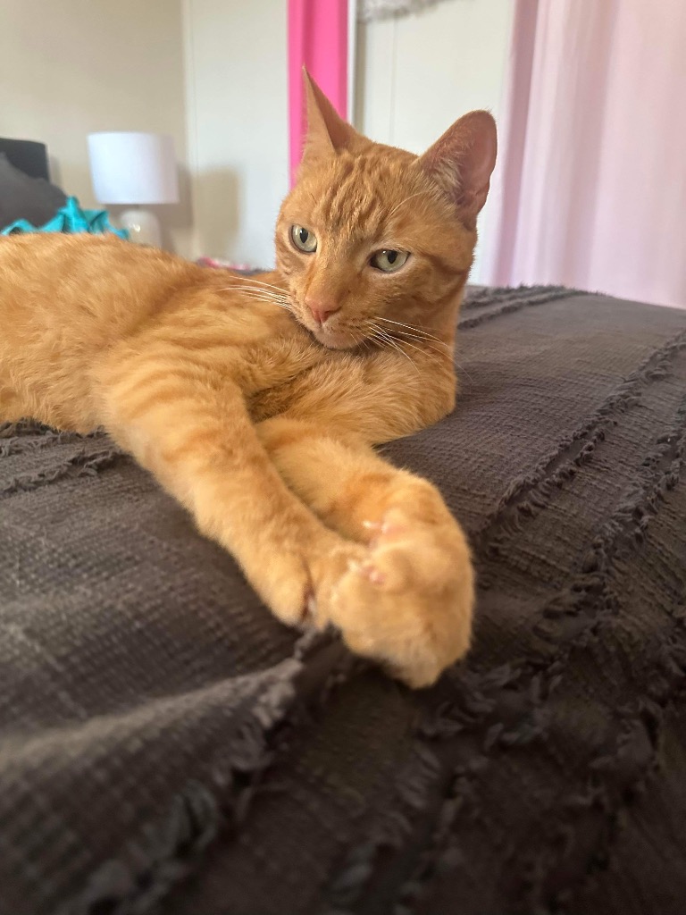Meet our gentle ginger giant - Bomber. This lad is big - but don't be fooled by his large stature - this boy is quiet, confident and incredibly chilled. He has come from a busy feline household and now in foster care with companion Cherry. Bomber is 9 years young which was a shock to SAFE staff and his carers - he seems much younger. Bomber is chipped, desexed and will have a booster vaccination all included in his adoption fee. Adoption with companion Cherry would be favourable - but Bomber will do super well in any household and as a solo.