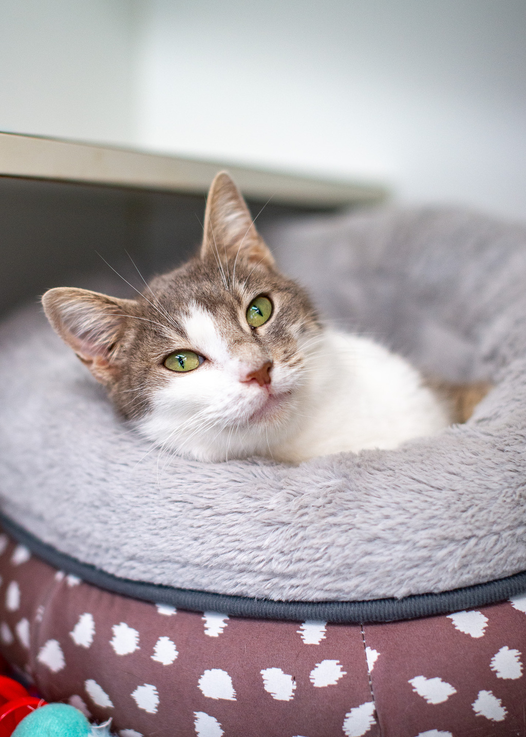 Tammy is a free spirit who isn't too keen on being held, but would love to cuddle up on the couch and enjoys a good scratch. While she has an independent streak, she is also loyal and loving, and would brighten up your home with her quirky personality.