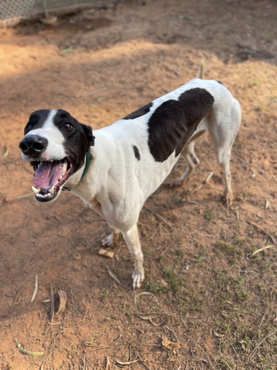 IMP 157 SPOT. SPOT is a male white and black Greyhound, 22 months old. He was surrendered to the Shelter for rehoming. He has not raced. He is good with kids and other dogs (although we would still recommend caution with small dogs or off leash as was exposed to some racing training). He has never been around cats so a home with no cats or complete separation is required. He is a happy boy in the Shelter. Quiet. Clean. No issues noted at all. His adoption fee is $408. He has been microchipped, registered, wormed, flea treated, desexed and vaccinated. He is ready to go now. Please call 6583 3488 or visit the Shelter. Thankyou