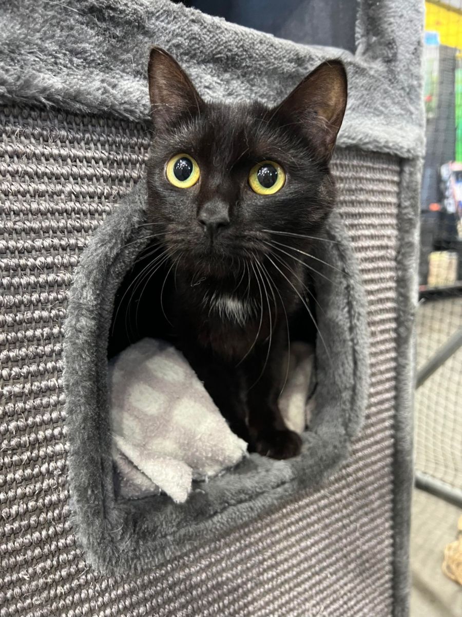 Blackberry is a beautiful, female cat with stunning panther-like features. She is very loving and affectionate with her humans, however she can be shy around new people and environments at first. Once she gets to know someone, she will quickly show her loving side and become very attached. With some patience and love, Blackberry will make the perfect addition to your family!