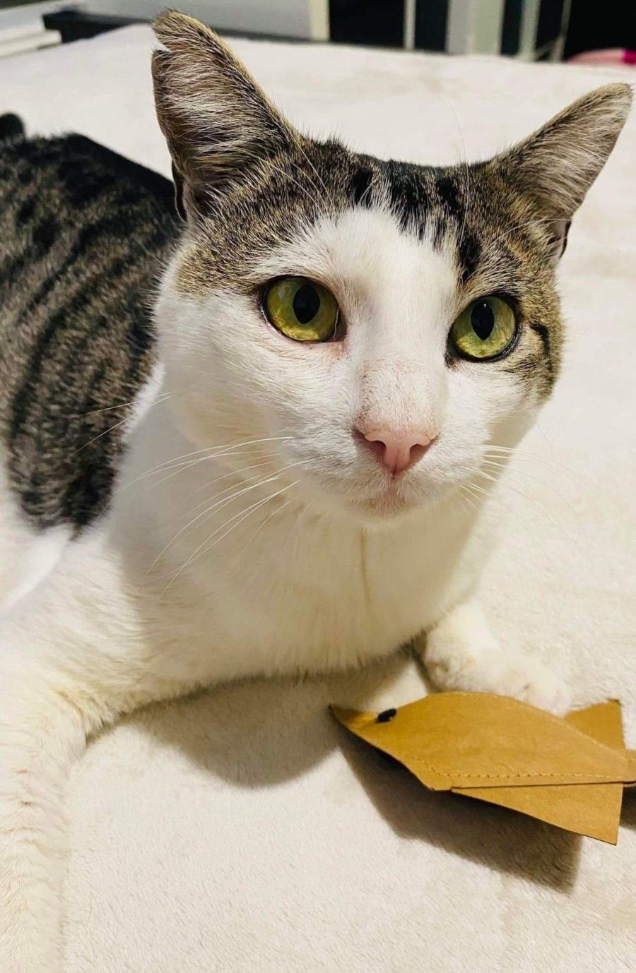 Meet Rocky, the most gorgeous love bug! He craves human interaction, head rubs, and sunshine naps. He's playful, especially with his beloved toy fish. Rocky loves cuddles, but he's learning to be gentle. He's best suited for a single person or couple, or older teens in the family.