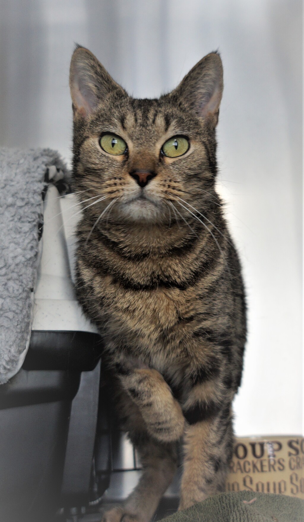 Hello there, potential adopter! My name is Attie, and I'm a beautiful tabby cat looking for a new forever home. You'll find me eagerly awaiting your visit at the RSPCA, and I'm ready to shower you with love, loyalty, and endless cuddles.