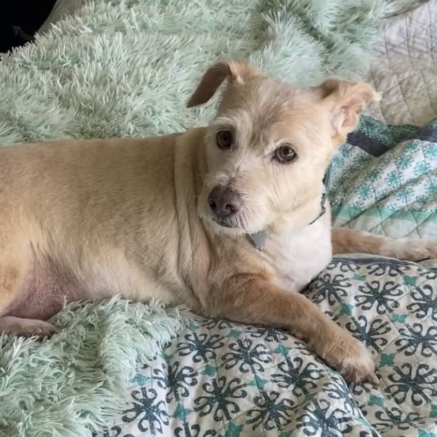 Blossom is a perfect little old girl (very young 13 year old) possible Border Terrier.