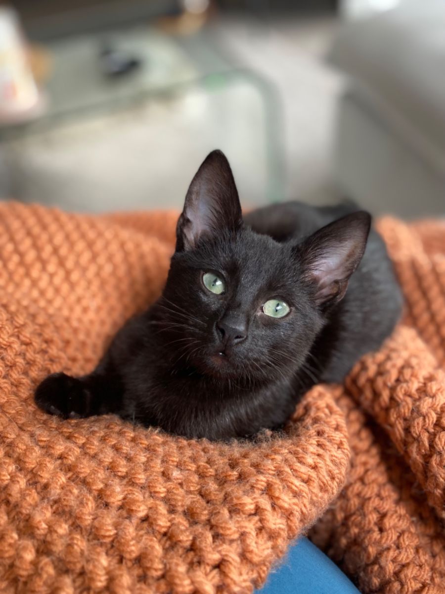 Reef is a 4-month-old black male Domestic Short Hair kitten that absolutely loves to cuddle and snuggle up on your shoulder or chest. He has earned his name Reef as he has a cute white tip at the end of his tail, just like a reef tip shark.