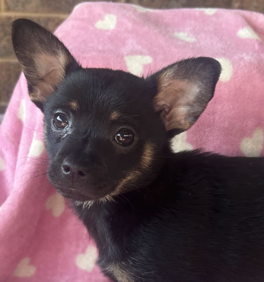 Ishani has been in care with her mum (a Chihuahua mix around 5kg) and her two sisters. She has had a fantastic start to her socialisation with other dogs as there has been dogs of all different ages and sizes also in her foster home. Ishani loves to run up and down with the other puppies and is all in for a game of rumbles. She will be a small dog when fully grown (currently 1.85kg and surrendering owner reports father is a Pomeranian) but she will be relatively active. This means she will require daily exercise and mental stimulation to fulfil her needs. Compared to her sisters, Ishani has that bit more spunk and go about her that needs to be channelled in the right direction.