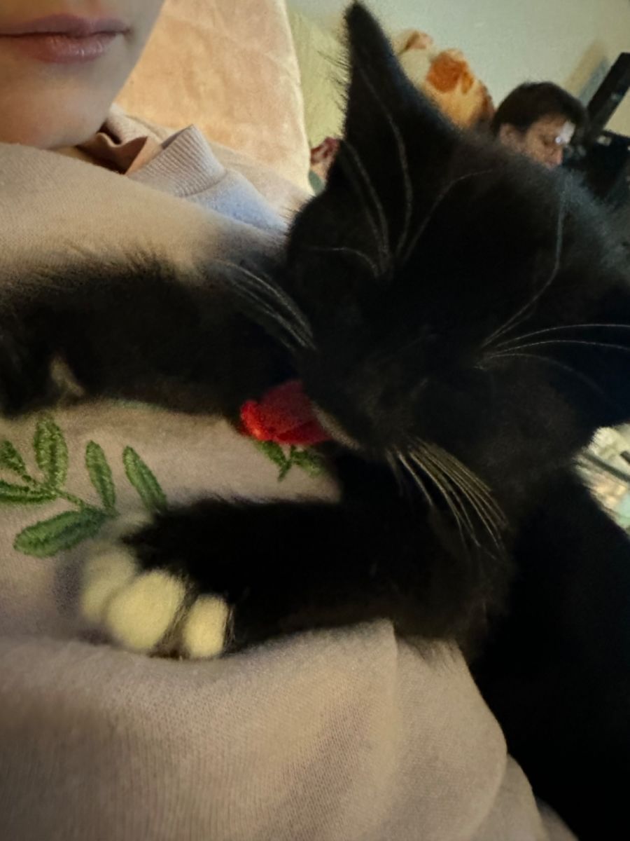 I’m still learning my kitty manners and being around the three resident cats at my foster house. Im handling them okay, I hiss at them when they hiss at me, but my foster Mum says I’m doing a good job.