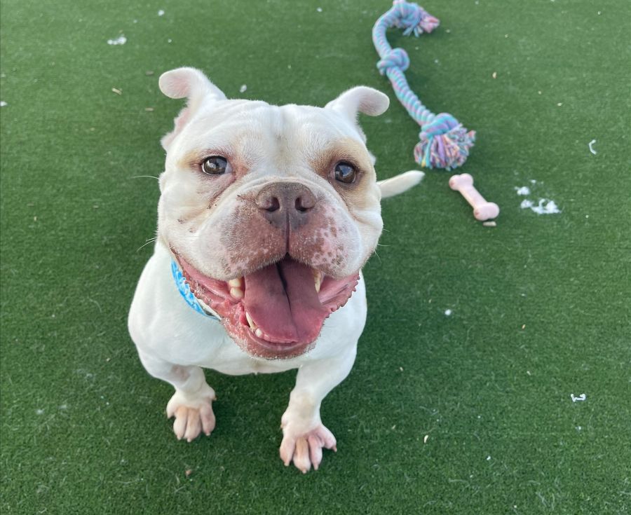 Cooper is a strong and lazy nugget who loves snuggling up for a nap. He’s very relaxed and chill, but he can be quite strong on lead so he will need some leash training to help him learn how to walk properly. He also loves getting affection from people and can be quite slobbery when he gets excited!