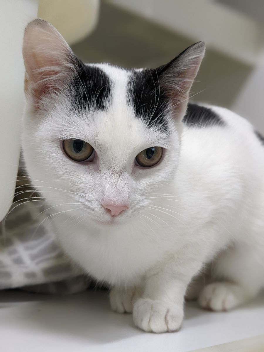 Sally is a sweet and petite female cat who loves to cuddle! She is incredibly friendly and smoochy, always looking for an opportunity to be close to her human companions. Sally is an indoor-only kitty who loves nothing more than curling up in her igloo bed for a nap.