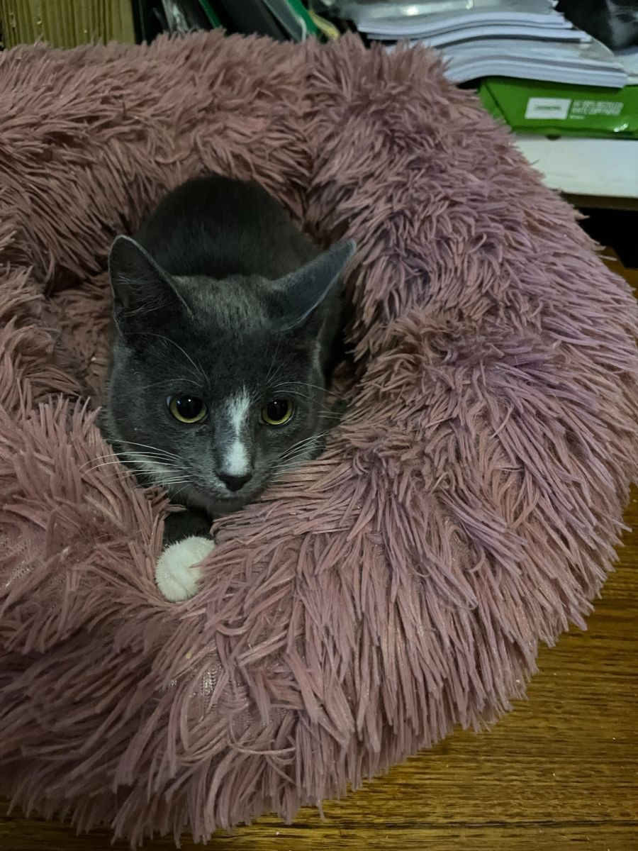 Dwight is a male kitten who loves to cuddle and play. He is a very affectionate boy who loves belly rubs and snuggling with his humans. He is incredibly soft to the touch and loves to chase toys around the house. He has plenty of energy, but he always takes time to slow down and enjoy some quality cuddles with his people.