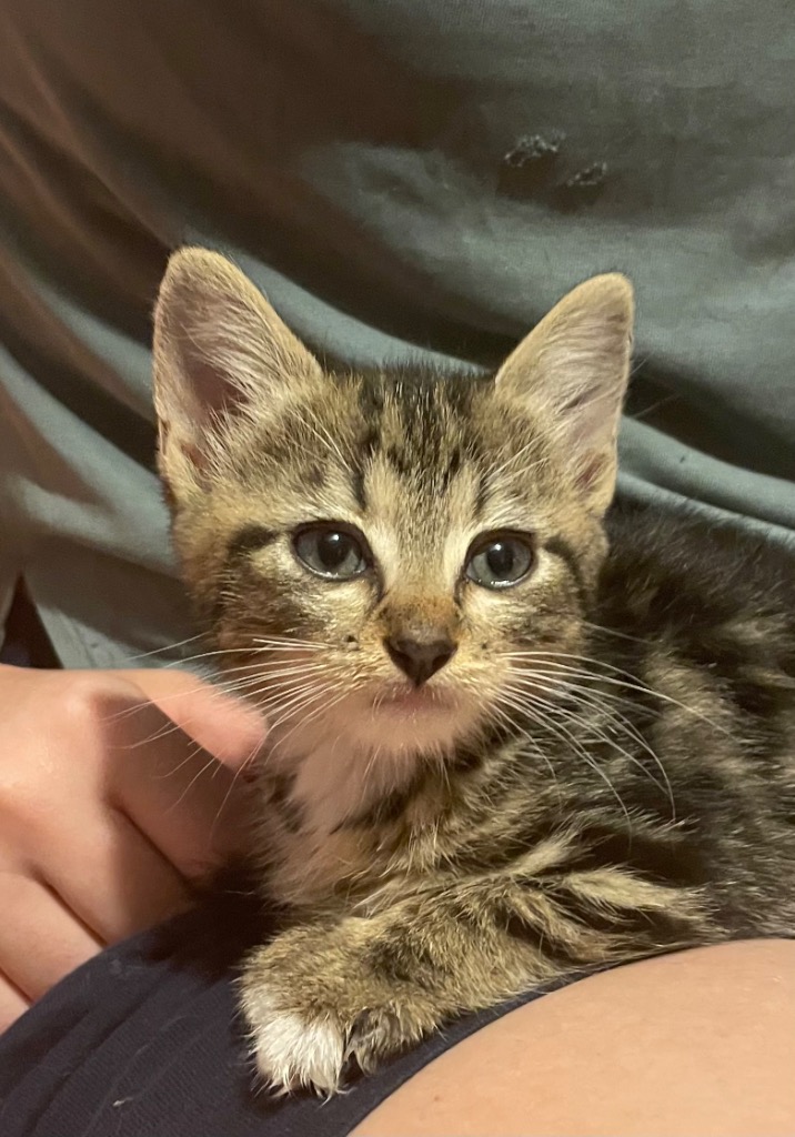 Lovely Lara, lap cat in training. Meet Lara, the second kitten scooped up, we're pretty sure Lara surrendered to for snack and smooch purposes. The biggest of the kittens, Lara has plans to be a lap owning love bug and is now accepting applications from potential (staff) families.