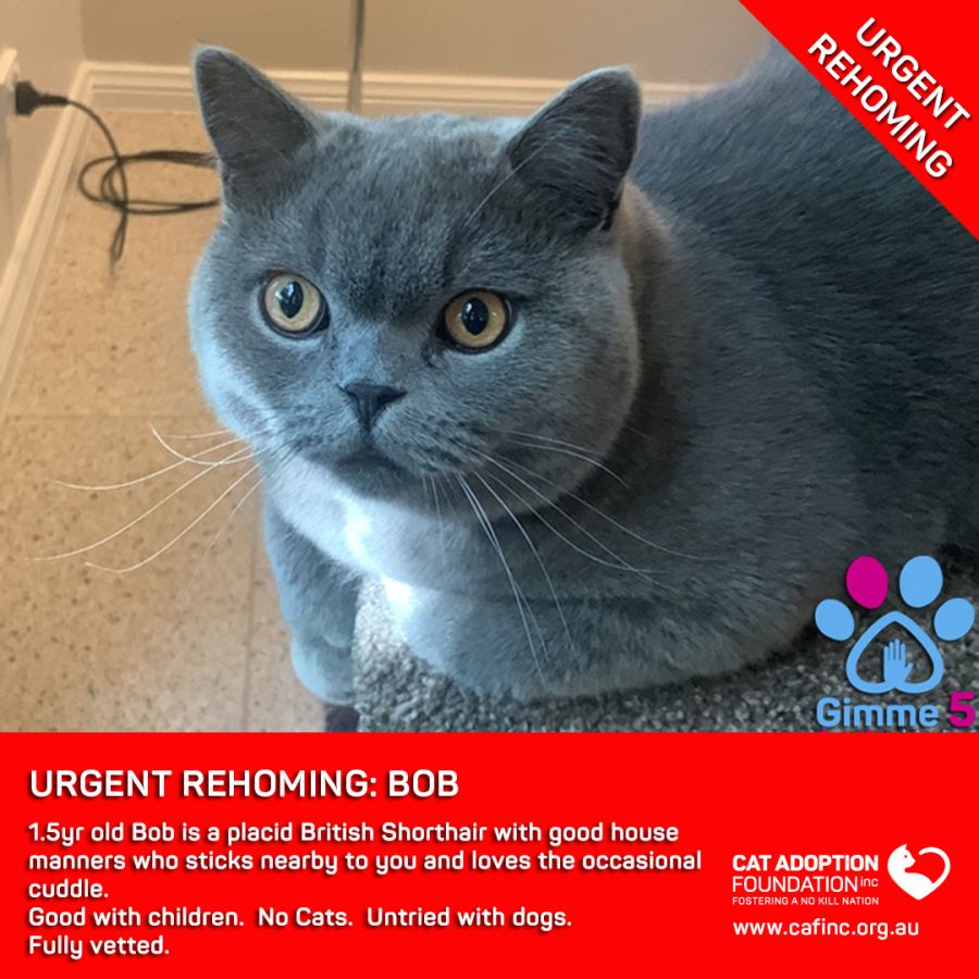 Donate to Bob Private Rehoming No Charge! at Cat Adoption Foundation Incorporated via Shout
