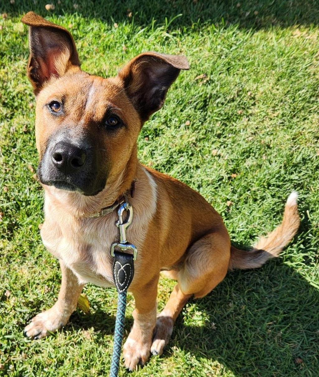 Fidget is approximately 4 months old and and, we think, a Red Heeler X German Shepherd.