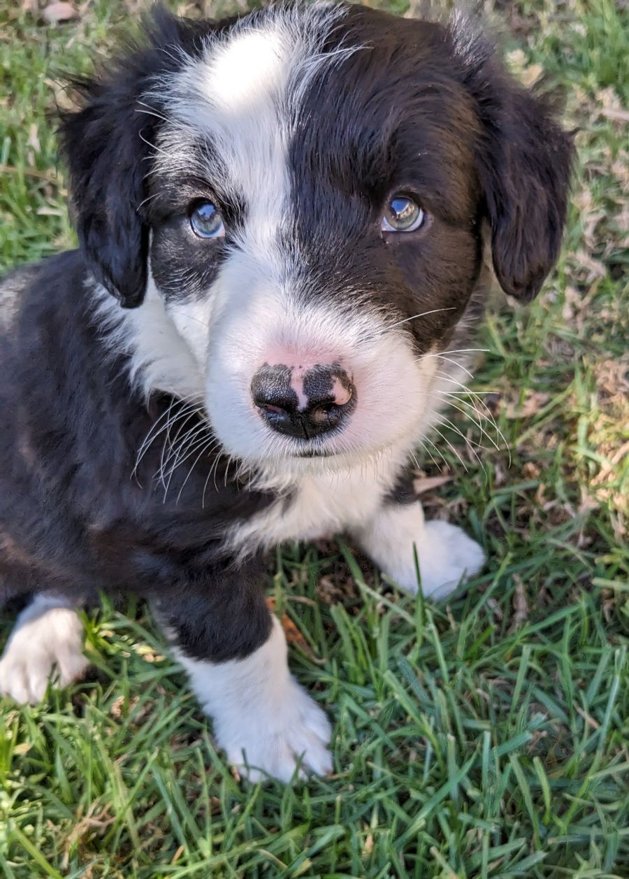 I am confident and inquisitive and love to explore my surroundings and play chase and tug with my 5 siblings. I am a fun loving young pup with a very waggly tail when I am happy or busy exploring.