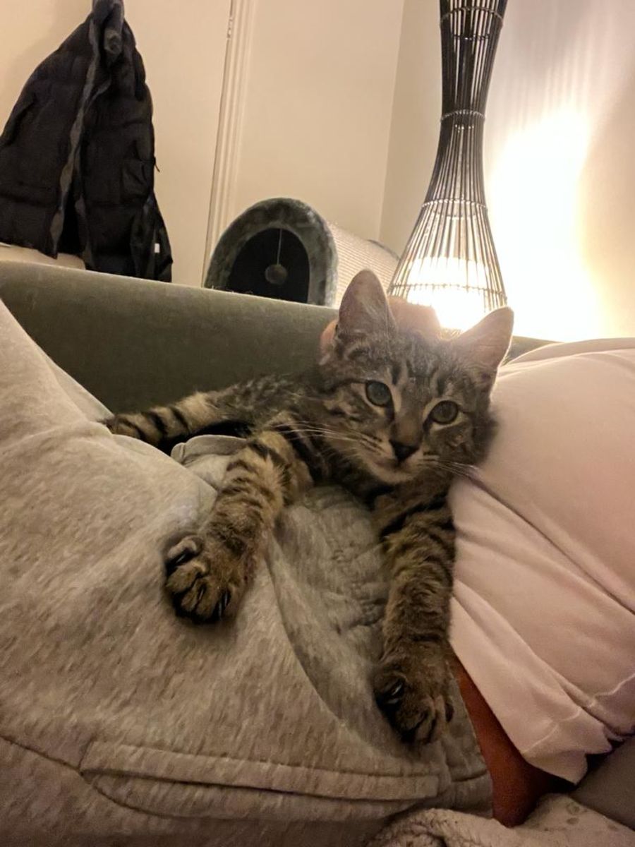 Ralph would be suitable to a quiet home and ideally be adopted with one of his siblings or another gentle young kitten to play with.
