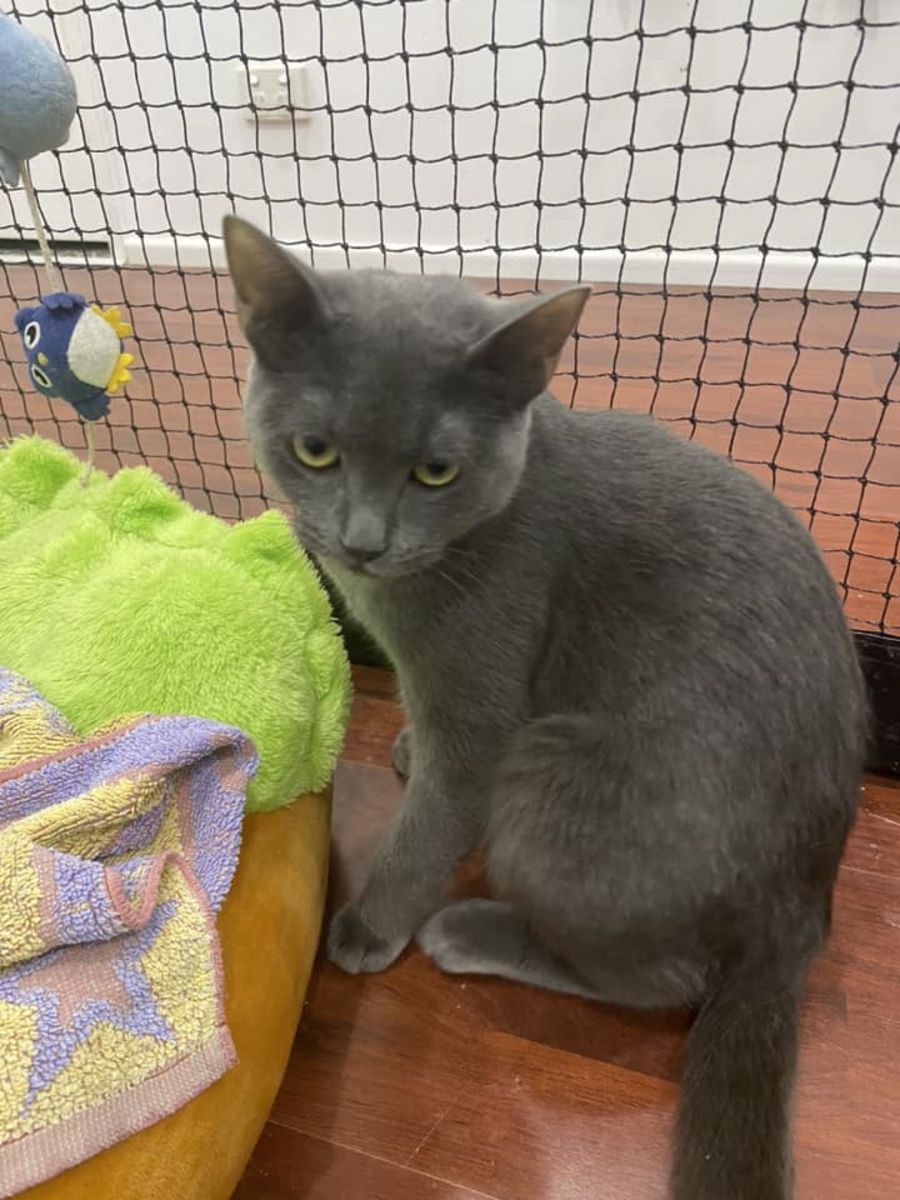 I am still a bit nervous which is to be expected given my rocky start but my foster mum has a spot set up in the office where me and my siblings can hang out and watch everyone in the house when we don’t feel up to being around everyone. In saying that I am very happy we she comes and hangs out with us I am very comfortable to let her pat me and give me cuddles you should hear it when me and my siblings are all purring at the same time. I’m probably the most confident one I am starting to spend more time exploring my new house and am starting to play with my foster siblings.