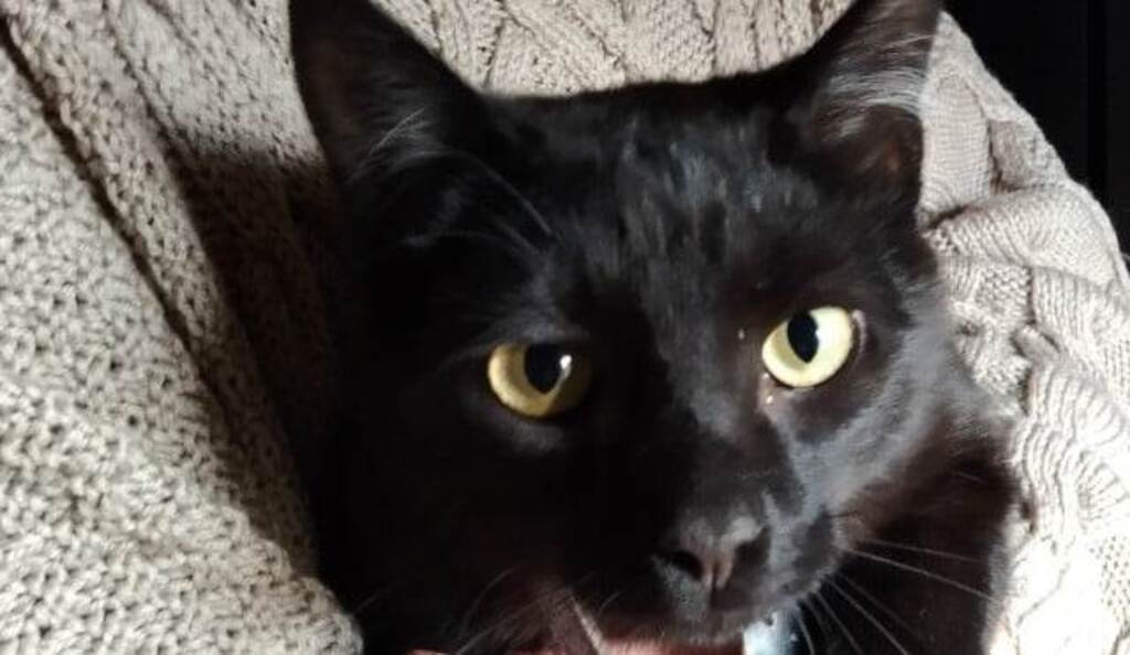 A sleek black cat his name is Mo, he's come a long way, now he's ready to go, a loyal companion, devoted and true, could Mo's forever home be with you?