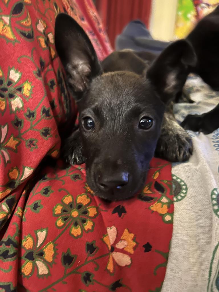 Comes from a litter of 10. Bluetoes has a beautiful black shiny coat with those adorable blue heeler socks on . She's the shy girl of the pack but once warmed up, watch out ! Loves to be around humans . Would make a great family pet