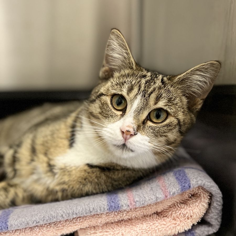 Chili is a stunning young feline who is ready to find her forever home. She is a beautiful cat with a unique and striking appearance that is sure to capture your heart.